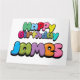 Colorido "Feliz cumpleaños, James" estilo bblegum texto.