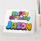 Colorido "Happy Birthday Jason" estilo bblegum texto.