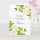 Esta hermosa tarjeta de felicitación cuenta con una ilustración de flores de peonía blancas con hojas verdes. Hay un saludo de cumpleaños interior que es perfecto para tu mamá.