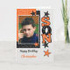 Feliz cumpleaños, hijo. Reemplace la foto por la suya propia y agregue un nombre y un mensaje. Diseñado en naranja y negro, con estrellas. Estamos tan orgullosos de llamarte nuestro hijo.