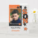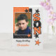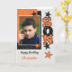 Tarjeta Feliz cumpleaños, naranja y foto negra
