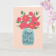 Un frasco de albañil lleno de un hermoso ramo de peonías y flores blancas con las letras de la mano 'Por mi madrina' en la etiqueta y 'Feliz cumpleaños número 105' en el frasco de albañil. ¡La tarjeta de cumpleaños perfecta para celebrar el cumpleaños de tu madrina! © Ness Nordberg