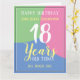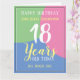 Celebra un cumpleaños con una tarjeta personalizada que muestra el nombre del destinatario, el número de años y la fecha. Añade también un mensaje dentro. Tarjeta de cumpleaños para 18 años. Feliz cumpleaños 18.