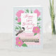 Una máquina de escribir vintage rosa rodeada de flores y hojas con un pájaro chickadee posado en la máquina de escribir. Un trozo de papel de la máquina de escribir tiene las palabras manuscritas Feliz cumpleaños número 34 tía. ¡Una tarjeta de cumpleaños encantadora para tu tía! © Ness Nordberg