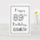 El frente de este diseño de tarjeta de felicitación de cumpleaños con tema inspirado en el art déco de la década de 1920/1930 presenta el mensaje "Feliz cumpleaños 89", junto con un nombre de destinatario personalizable. El número "89" en la parte frontal tiene un estilo con líneas elegantes, y también hay un borde con líneas. El interior tiene un mensaje de felicitación de cumpleaños personalizado, o quizás podría estar en blanco si se desea escribir un mensaje a mano. Una tarjeta de felicitación de cumpleaños lujosa y personalizada como esta podría ser utilizada para celebrar el cumpleaños número ochenta y nueve de alguien. [~Z0000641]