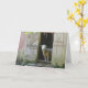 Esta tarjeta de saludo muestra una oveja adorable parada en la puerta de su casa en Nueva Inglaterra.