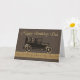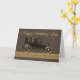 Muy masculina en tonos marrón y bronce, esta carta muestra un sedán clásico con tablas de correr, probablemente de los años veinte o treinta. Tiene un rico borde de filigre dorado y letras. Una carta elegante para los hombres en tu vida.