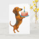 Tarjeta Feliz cumpleaños pastel perrito salchicha dachshun