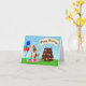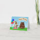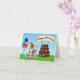 Este festivo Pastor Alemán está rodeado de globos coloridos, regalos envueltos y una deliciosa tarta de chocolate de tres niveles decorada con huesos de perro y huellas de pata, esta tarjeta es perfecta para los amantes del perro.