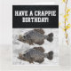 Reírse de risa y hacer que el cumpleaños de alguien sea delicioso con nuestra graciosa tarjeta de cumpleaños dedicada a la pesca de pastel de rapto! Esta tarjeta llena de juego de palabras es la mejor captura para cualquier entusiasta de la pesca que celebra su día especial. Con un delicioso ilustracion de trofeos de crustáceos, esta carta marca instantáneamente la pauta para una celebración llena de risas. Las brillantes obras de arte y los colores vibrantes lo convierten en una delicia visual, garantizada para hacer sonreír al niño de cumpleaños o al chica de oído a oído. Escriba el saludo de su personalizado en el interior de la tarjeta. Ya sea que esté celebrando el cumpleaños de un compañero de pesca, un miembro de la familia o un colega, esta tarjeta es la elección perfecta para hacer su día extra especial. Es una deliciosa sorpresa que muestra que pones pensamiento y humor en seleccionar el saludo perfecto. ¡No dejes que esta oportunidad se deslice como un astuto pez! Pida hoy su tarjeta de cumpleaños temática sobre la pesca de Crappie y haga de su cumpleaños una celebración inolvidable llena de risas, golpes y una carga de buenos deseos. ¡Créannos, estarán enganchados desde la primera mirada!