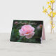 Una delicada y delicada rosa rosa honra la cubierta de esta carta. En la parte trasera de la tarjeta hay un rosa inglés rosa.