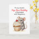 Una adorable tarjeta de cumpleaños para una tía con una ilustración de un pequeño ratón lindo que lleva una magdalena de vainilla con sprinkles y una cereza encima. Todo el texto de esta tarjeta se puede editar en el área de personalización.