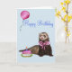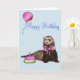 Tarjeta Feliz Cumpleaños Torta Globo Furón Adorable