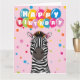 Cute tarjeta de cumpleaños feliz de cebra para cualquier edad.