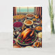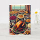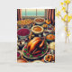 Una tarjeta para desear a amigos y familiares un Feliz Día de Acción de Gracias con un divertido ilustracion de libro de historietas de una cena de pavo.