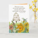 Felices saludos de Acción de Gracias con una escritura de la Biblia del libro de los proverbios 16:24 y decorados con flores de otoño y abejas volando alrededor de una cuchara de abejas ilustrada con tinta y acuarela. En el interior hay más flores y una sombra de naranja cálido con texto que puedes editar para adaptarlo a tus necesidades.