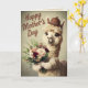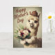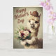 Tarjeta de felicitación de estilo vintage con una alpaca sosteniendo flores, arte de collage. - felicitaciones del día de la madre para una mamá que ama los animales de alpaca. Dentro hay un mensaje que puedes personalizar o simplemente eliminar.