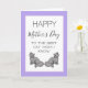 Esta tarjeta presenta las palabras "Feliz Día de la Madre a la mejor mamá gato que conozco" en la parte frontal con adorables dibujos animados de gatos. El interior dice "Espero que este día esté lleno de todas las cosas que amas" que se puede personalizar completamente o eliminar.