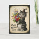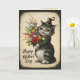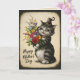 Tarjeta de felicitación de estilo vintage con un gato sosteniendo flores - felicitaciones del día de la madre para un gato o una madre amante de lo vintage. Dentro hay un mensaje que puedes personalizar o simplemente eliminar.