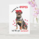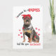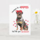Feliz Día de la Madre Malota de parte de tu perro Rottweiler Tarjeta con amor y afecto. Tu perro Rottweiler quiere ser tan malote como TÚ, su mamá perruna. Lleva una bandana de lunares rojos atada alrededor de la cabeza y gafas rojas características como las tuyas. Las huellas de sus patas rosadas y rojas tienen forma de corazón en uno de los dedos. En el interior hay una página izquierda de lunares rojos y un mensaje conmovedor en la izquierda. Eres tan admirada, eres vibrante, fuerte, paciente y asombrosa además de ser la mejor mamá perruna. Todo el texto es editable, solo usa la opción "personalizar". Por favor, recuerda cambiar el nombre del perro por el nombre de tu perro. Encontrarás más de 30 razas más como esta con bandanas y gafas rojas en nuestra colección "Tarjetas y regalos malotes de tu perro". También encontrarás una bandana roja, como la de la tarjeta que puedes personalizar, ¡y tomarte una foto con tu perro