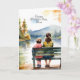 Dulce tarjeta de acuarela Feliz Día de la Madre de un hijo a una madre. Bonito acuarela ilustracion de una madre sentada con su hijo en un banco de un parque.