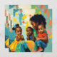 Bonito colorido ai arte abstracto en verde azulado, rosa, naranja, azul y amarillo. Ilustracion de una madre afroamericana y tres hijos con un mensaje sentimental personalizado en la parte de atrás de esta tarjeta del Día de la Madre. Puede editar el mensaje de la parte posterior para decir lo que quiera. Madre, hija e hijos afroamericanos.