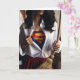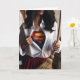 Feliz día de la madre con una mujer sosteniendo una escoba y una camisa desabrochada con un disfraz de superhéroe asomando. ¡Las madres son superhéroes!