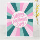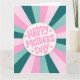 Mimama en su Día de la Madre con esta tarjeta retro de Feliz Día de la Madre con un estallido de sol. La forma perfecta de mostrar cuánto te importa. Nuestra tarjeta está diseñada con un vibrante patrón de estallido de sol verde y rosa en el exterior y letras jugosas en el interior.