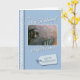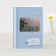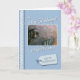 Tarjeta del Día del Padre para "Mi esposo, mi amigo" en un estilo de libro de texto con fondo azul y una cinta falsa que dice: Feliz Día del Padre... También en la parte delantera hay una copia de una pintura al óleo original de una pareja mayor que pasea por un sendero junto al lago, brazo bajo los cerezos. Diseñado por Rycky Creations; pintura de R. R. Chaffin.