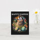 Tarjeta Feliz Día de Pascua Conejito Gato Huevos Cesta Hom