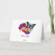Tarjeta del día de San Valentín. Hermoso corazón rojo con rosas púrpuras, flores rosadas, mariposa azul y fondo de estilo pop art. Personaliza el interior de la tarjeta con tu propio mensaje personal.