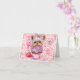 .: La parte delantera presenta un hermoso diseño de un perrito en una magdalena, y cuenta con un fondo de contorno de rosa. El interior simplemente dice "Feliz día de San Valentín" y es totalmente personalizable. ¡Este diseño está lleno de color y diversión caprichosa!