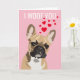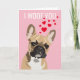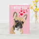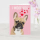 Tarjeta divertida del día de San Valentín para perro con un fondo rosa que se puede cambiar a cualquier color, un adorable bulldog francés cervato, corazones de amor rojos y las palabras humorísticas "Te GUAPO".