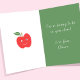 Dile a un maestro lo verdaderamente apreciados que son con esta linda tarjeta del Día de San Valentín. Un diseño dulce y simple con muchos corazones y manzanas. Esta tarjeta personalizada presenta letras con estilo y las palabras "Feliz Día de San Valentín a mi maravilloso maestro", y existe la opción de reemplazar la palabra "maravilloso" con algo diferente. También puede agregar el nombre del maestro en la parte inferior. Dentro de la tarjeta hay una ilustración de una manzana sonriente y su propio mensaje personal. En la parte posterior, se puede agregar el nombre de la escuela o clase y el año de San Valentín.
