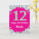 Tarjeta Feliz duodécimo cumpleaños, Purpurina de Plata y R