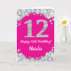Feliz 12º cumpleaños, tarjeta Purpurina Plata y Rosa Caliente con nombre personalizado. Para una mayor personalización, haga clic en el botón "Personalizar" y utilice nuestra herramienta de diseño para modificar esta plantilla.