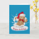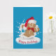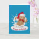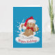 Los Navidades se burlan del hombre de pan de jengibre con leche blanca salpicando con el gorro de Santa Claus sobre un fondo acuático con texto de Felices Fiestas. Todo el texto es editable. Se puede cambiar el color de fondo.