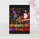 Tarjeta Feliz Hallothanksmas Esqueleto Calabaza Pavo Santa