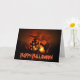 Halloween ilumina la tarjeta de felicitación con fondo negro.