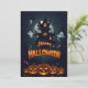 Celebra la temporada más espeluznante con nuestra tarjeta de Feliz Halloween. Con un diseño vibrante y divertido que incluye calabazas alegres, fantasmas amistosos y confeti colorido, esta tarjeta es perfecta para difundir la alegría de Halloween. El diseño incluye un mensaje caprichoso de "Feliz Halloween" en letras negritas y divertidas, sobre un fondo de patrones giratorios naranja y púrpura. Ideal para enviar saludos festivos a amigos y familiares, esta tarjeta captura la diversión y la emoción de Halloween con sus gráficos animados y llamativos.