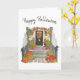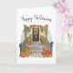 ¡Deséenle a alguien un Halloween Feliz con esta adorable tarjeta de saludo a la acuarela! Un ilustracion agradable y acogedor de un gatito gris dormido que se esconde en un corredor decorado con mucha fiesta y lleno de lámparas, hojas de otoño, murciélagos, cuervos, calabazas, telarañas y velas. ¡La mezcla perfecta de dulce y espeluznante para tus divertidas notas de Halloween! Esta tarjeta de Halloween está en blanco por dentro. Añade tu propio mensaje usando el editor, o deja en blanco para escribir una nota!