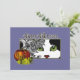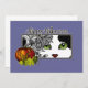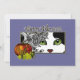 Gato negro de ojos verdes mirando detrás de una flor Art Nouveau con acento de calabaza y saludo de Halloween. Artista, Margaret Loftin Whiting, estilo clásico.