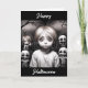 Tarjeta Feliz Halloween | Niño espeluznante con oso de pel