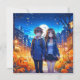 Tarjeta Feliz Halloween | Pareja Anime sosteniendo manos
