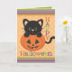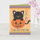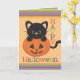Tarjeta Feliz Halloween un gato lindo Jack o' Lantern