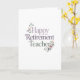 Un elegante diseño de tipografía que celebra la jubilación de un profesor, acentuado con sutiles elementos florales para un toque suave y atemporal. Este diseño expresa gratitud y aprecio por años de dedicación y orientación. Perfecto para tarjetas de jubilación o regalos significativos para honrar el impacto duradero de un profesor.