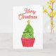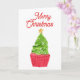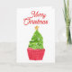 Cupcake de árbol de Navidad con acuarela para hacer dulces tus felicitaciones navideñas.