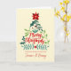 Una hermosa tarjeta de Navidades de la temporada festiva para tu hija y una persona con una ley compuesta por un hermoso árbol de Navidad hecho de botánicos de diferentes Navidades incluyendo poinsettias, holly y hojas. Todo el texto se puede personalizar excepto las palabras Feliz Navidad , luego personalizar con los nombres y dentro del mensaje © Ness Nordberg