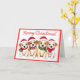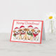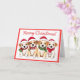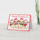 Difunde alegría de vacaciones con esta vibrante tarjeta de Navidades que incluye perros lindos en sombreros de Santa y una audaz frontera roja. Una elección festiva para los amantes de los animales.