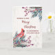 Feliz Navidad para su hijo y su tarjeta familiar con vegetación de color de agua rústica y patrón de madera cardinal y vintage.